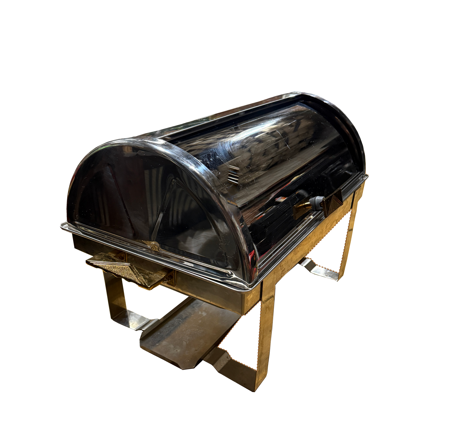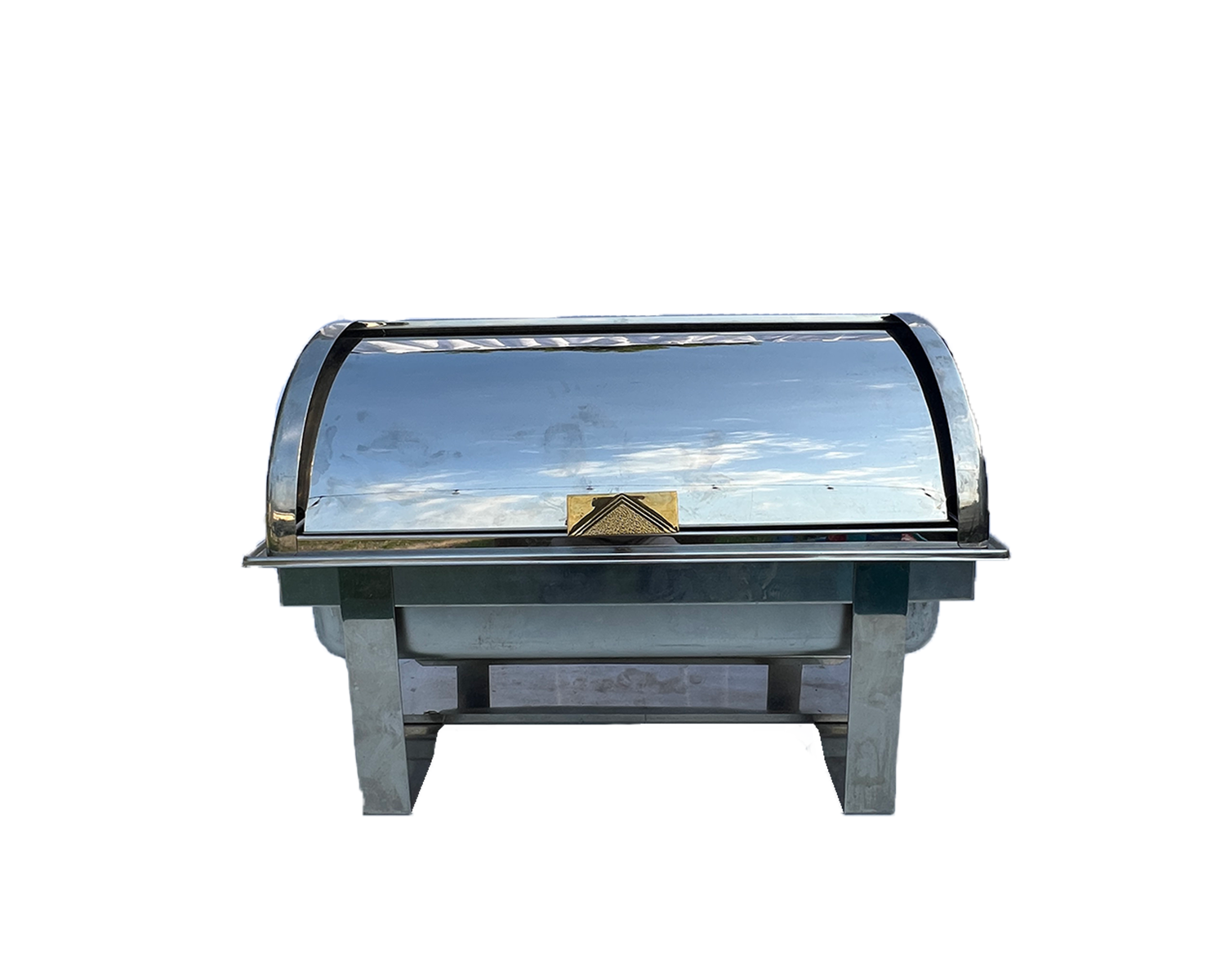 Elevate your buffet presentation with our premium Roll-Top Chafer. Made from polished stainless steel with a sleek roll-top lid and gold accent handle, this chafer combines function and elegance, making it ideal for weddings, banquets, and upscale catered events.